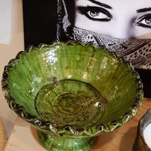 Coupelle artisanale en poterie de Tamegroute, façonnée à la main et émaillée dans de subtiles nuances de vert. Une pièce emblématique de l’art marocain.