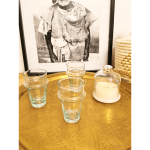 Petit verre beldi en verre recyclé soufflé à la main, pièce authentique et élégante pour sublimer une table bohème et naturelle.