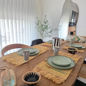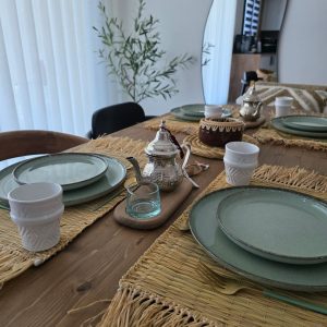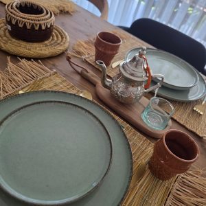 Plongez dans l’art de vivre marocain avec notre sélection d’objets artisanaux pour la cuisine et le bain. Céramiques, vaisselle, verres soufflés, serviettes tissées et accessoires en bois d’olivier composent un univers raffiné et authentique.