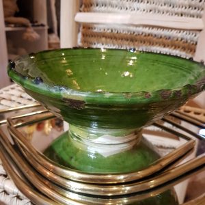 Grand saladier en poterie de Tamegroute, au superbe émail vert. Fait à la main selon le savoir-faire traditionnel marocain, il allie charme brut et authenticité.