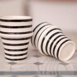 Ces verres en céramique rayés noirs, au design graphique et intemporel, apportent une touche moderne et élégante à votre table. Une vaisselle artisanale idéale pour un usage quotidien comme pour les belles tables.