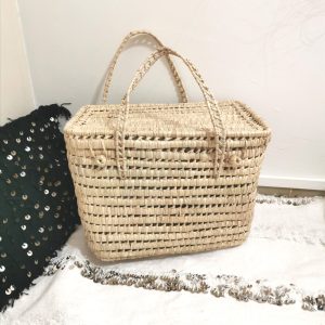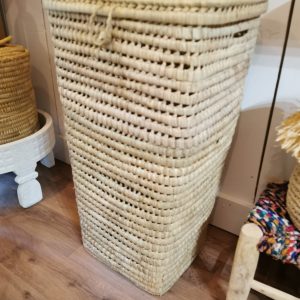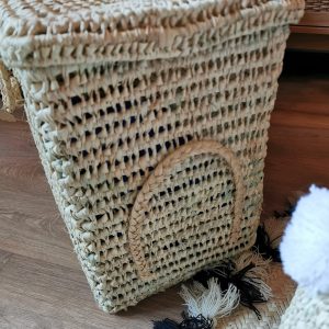 Malle tressée à la main en fibres naturelles, idéale pour ranger accessoires, jouets ou linge léger tout en apportant une touche bohème naturelle à votre intérieur.