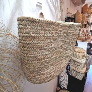 Grand panier mural en doum tressée, fait main au Maroc. Un format généreux et authentique pour une décoration naturelle et élégante.