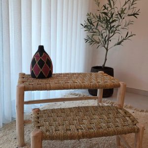 Banc artisanal en bois et doum naturel, décliné en petit, moyen et grand format pour sublimer une décoration bohème et authentique.