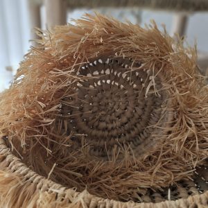 22,00 € – 35,00 €Plage de prix : 22,00 € à 35,00 €Panier décoratif artisanal en doum tressé à la main, sublimé par de franges en raphia naturel. Une pièce chaleureuse et bohème, idéale pour le rangement léger ou comme objet déco.