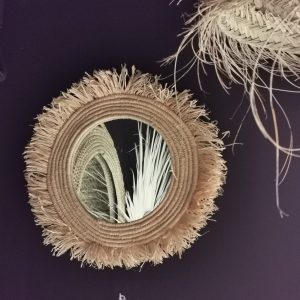 Miroir rond en raphia, tressé à la main au Maroc. Une pièce naturelle et chaleureuse qui apporte texture et authenticité à votre décoration intérieure.