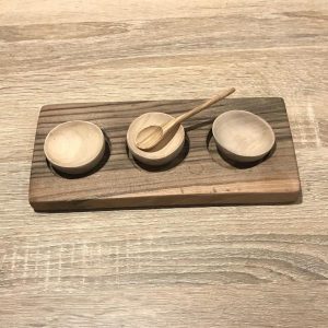 Planche à épices artisanale en noyer, façonnée à la main. Livrée avec ses accessoires, elle allie authenticité et élégance naturelle pour votre cuisine.