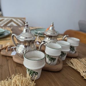Petit verre en céramique artisanale décoré d’un motif palmier, façonné à la main, idéal pour apporter une touche solaire et élégante à votre table.