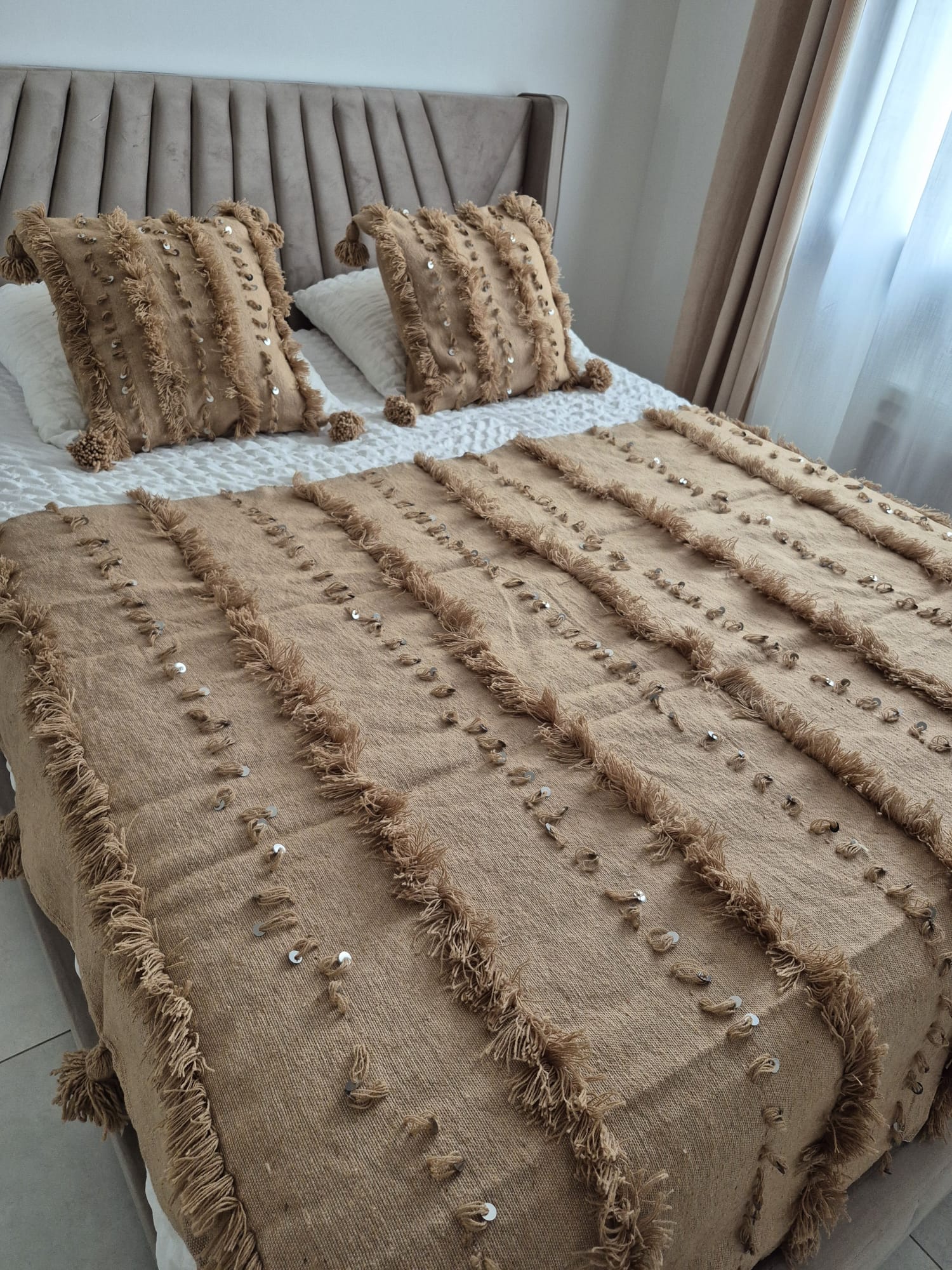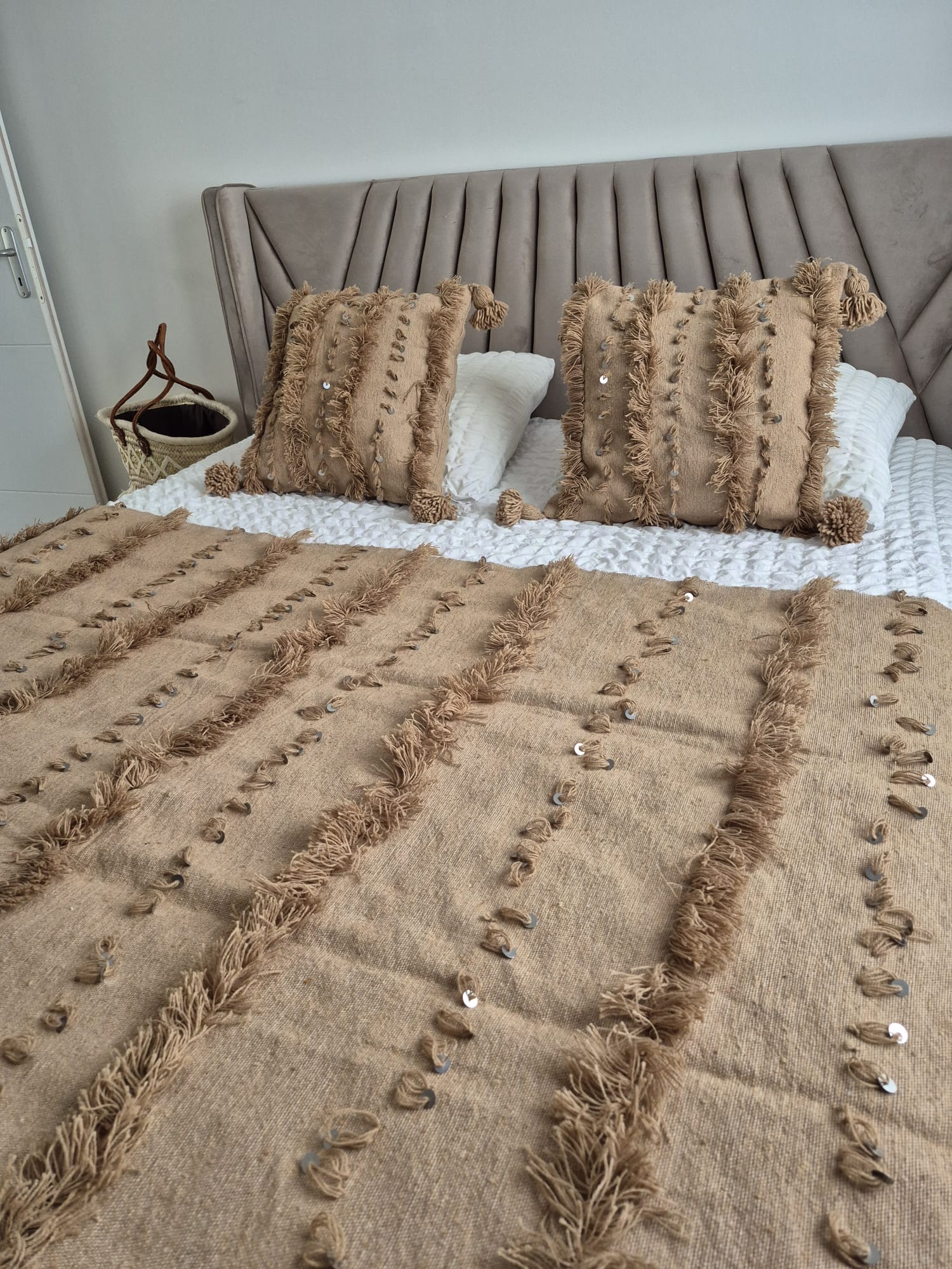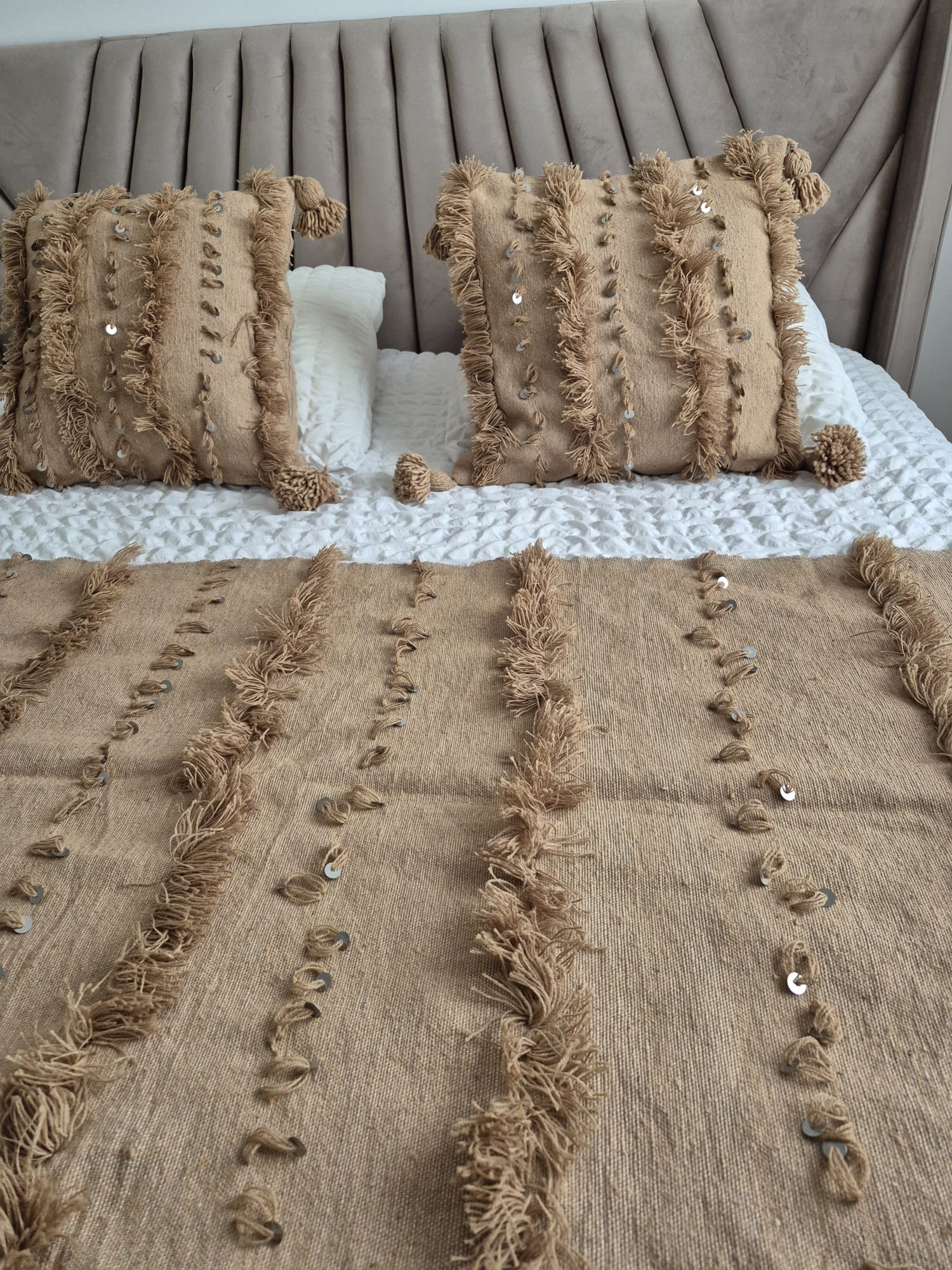 Ensemble Couvre-lit / Plaid & Deux Coussins – Handira Marron