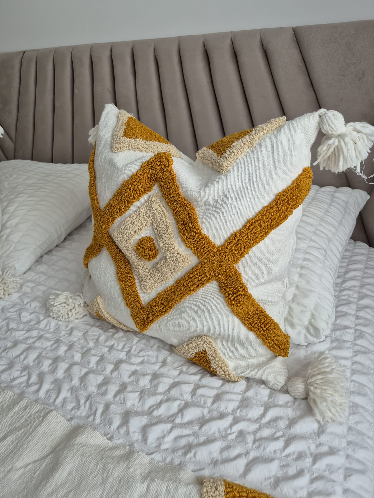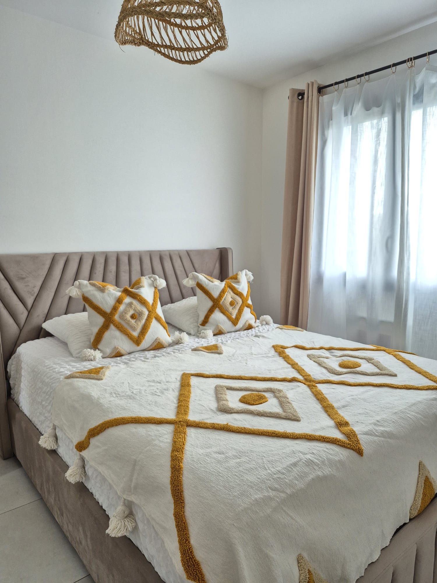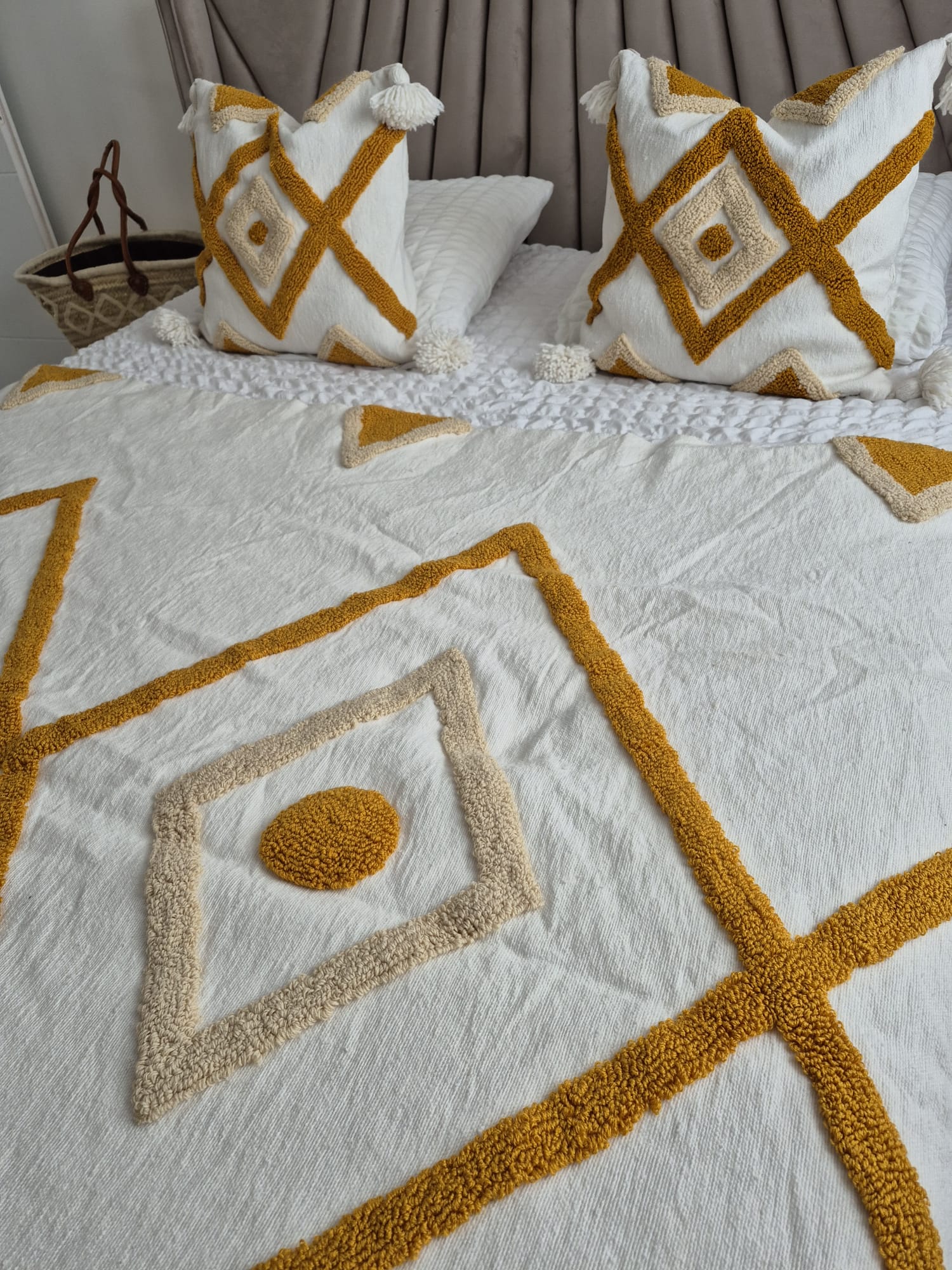 Ensemble Couvre-lit / Plaid & Une Housse – Motif Berbère Moutarde & Beige
