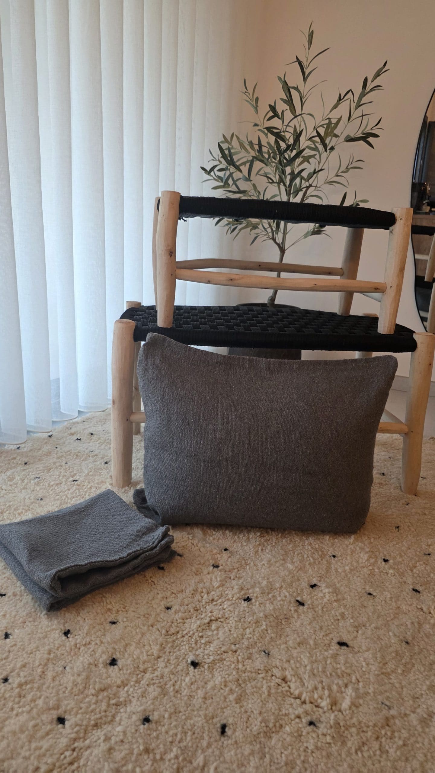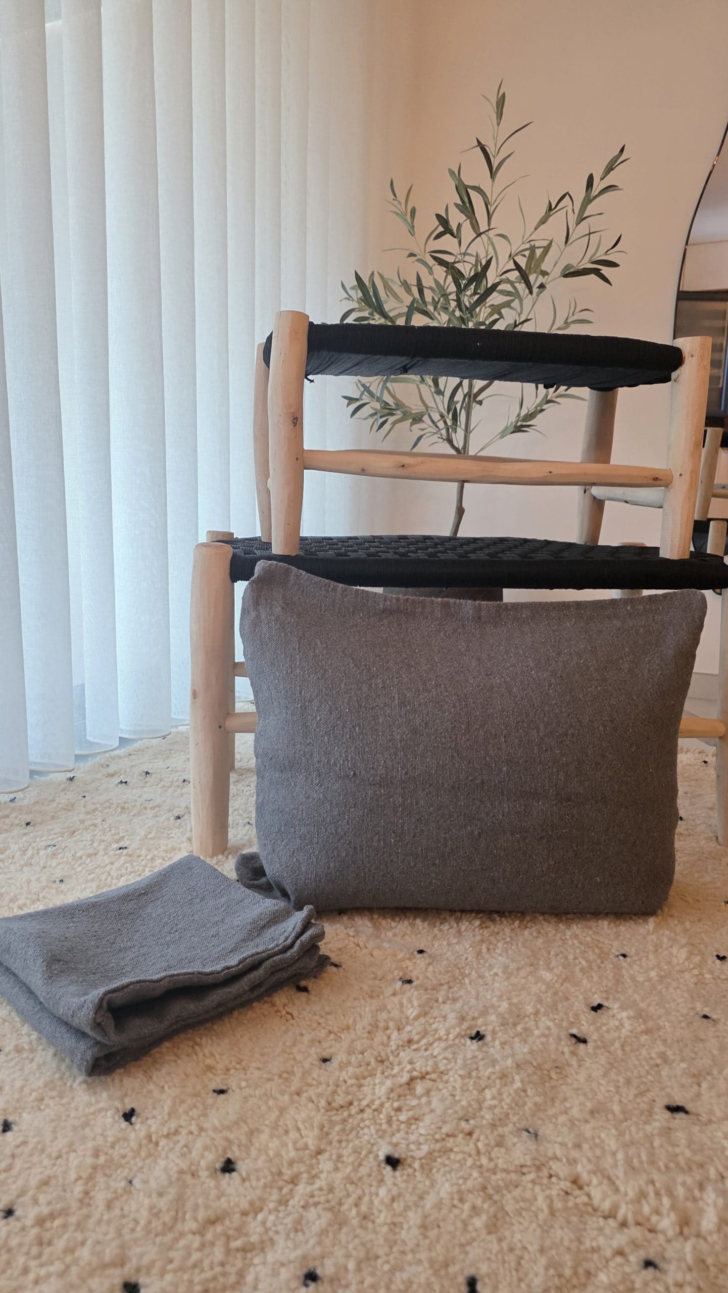 Housse de coussin artisanale en coton tissé fait main, dans un gris doux et intemporel. Une pièce sobre et élégante, idéale pour une décoration bohème, naturelle ou contemporaine.