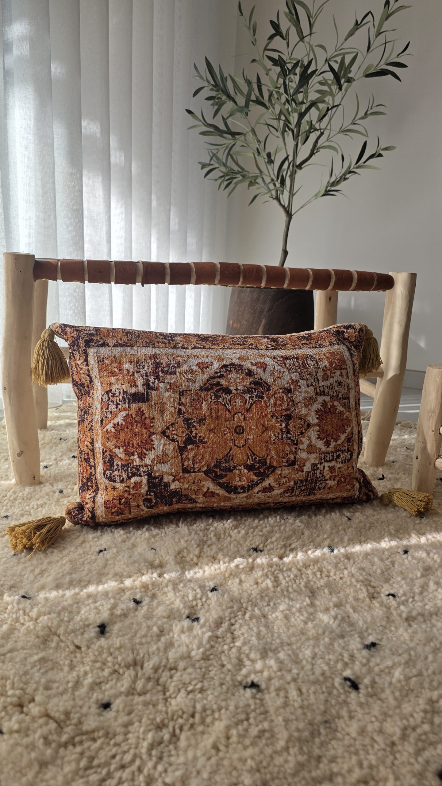 Housse de coussin berbère vintage aux tons ocre & ivoire
