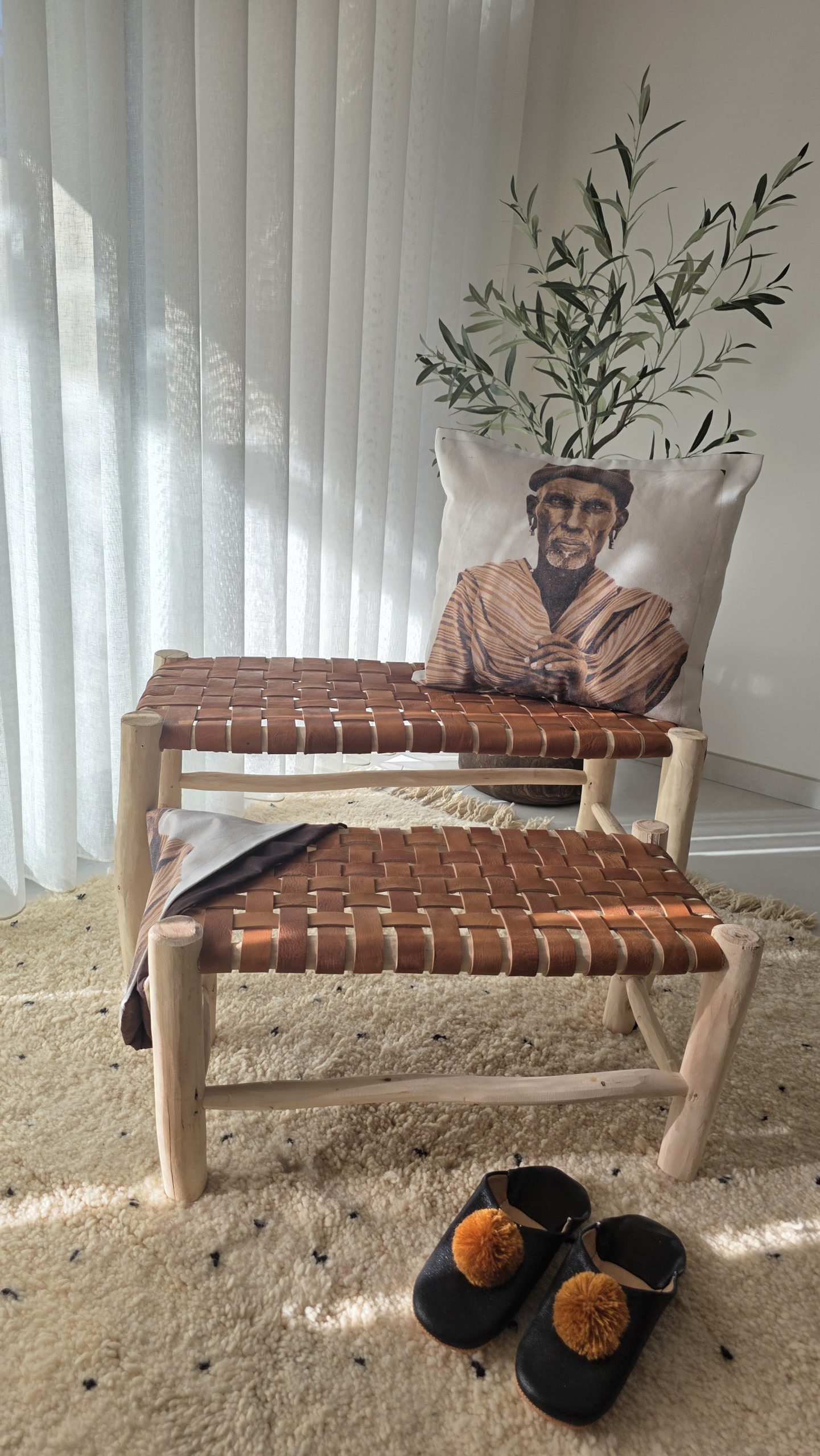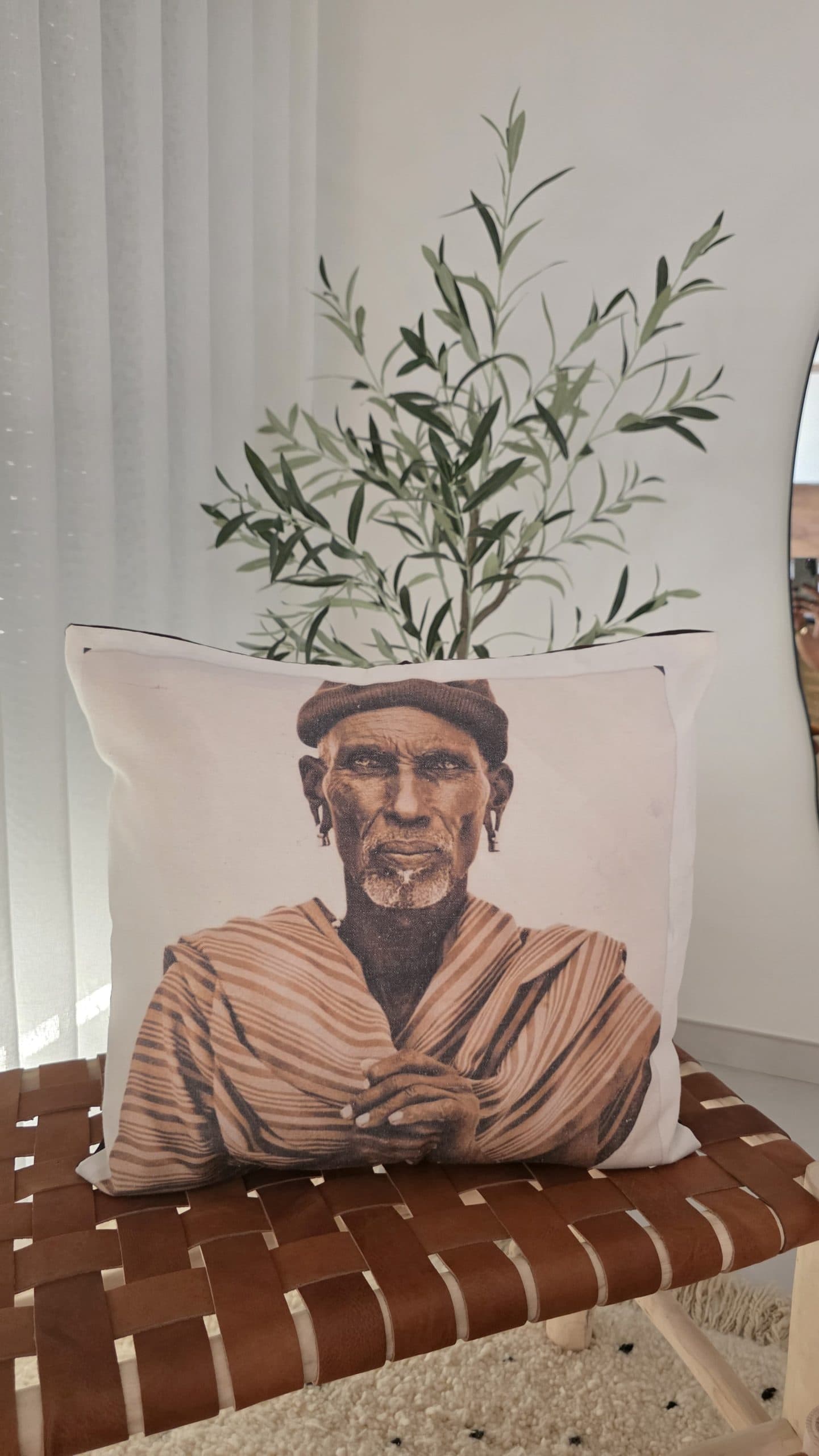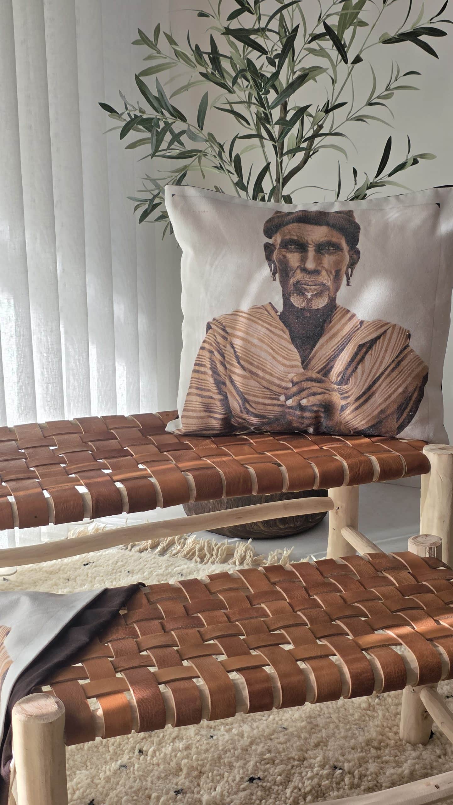 La housse de coussin Nomade en coton, est une création décorative qui rend hommage aux cultures itinérantes et à la mémoire des traditions marocaines. Son portrait expressif, aux teintes naturelles et chaleureuses, incarne la force, la sagesse et l’authenticité du monde nomade.