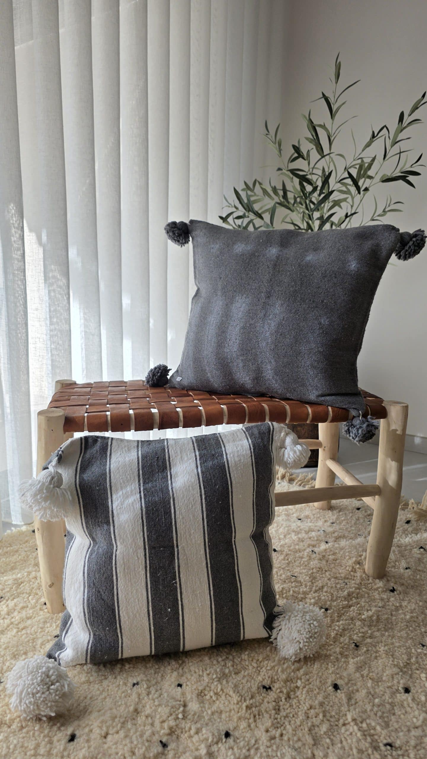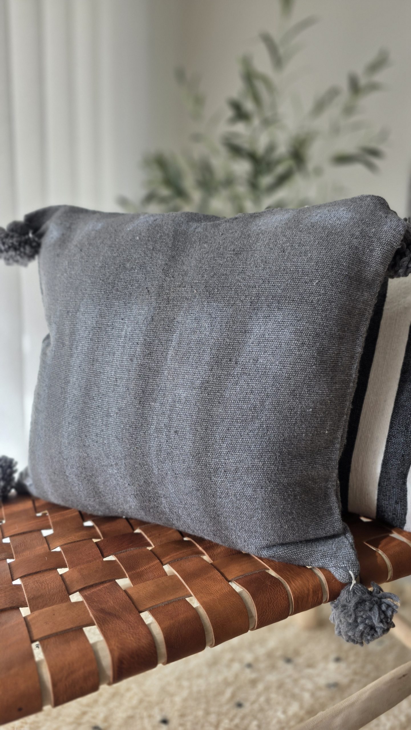 Cette housse de coussin artisanale séduit par son élégance naturelle et son esprit bohème chic. Sa teinte grise profonde, à la fois sobre et chaleureuse, s’intègre facilement dans tous les intérieurs : décoration contemporaine, ambiance naturelle, univers bohème ou maison de caractère.