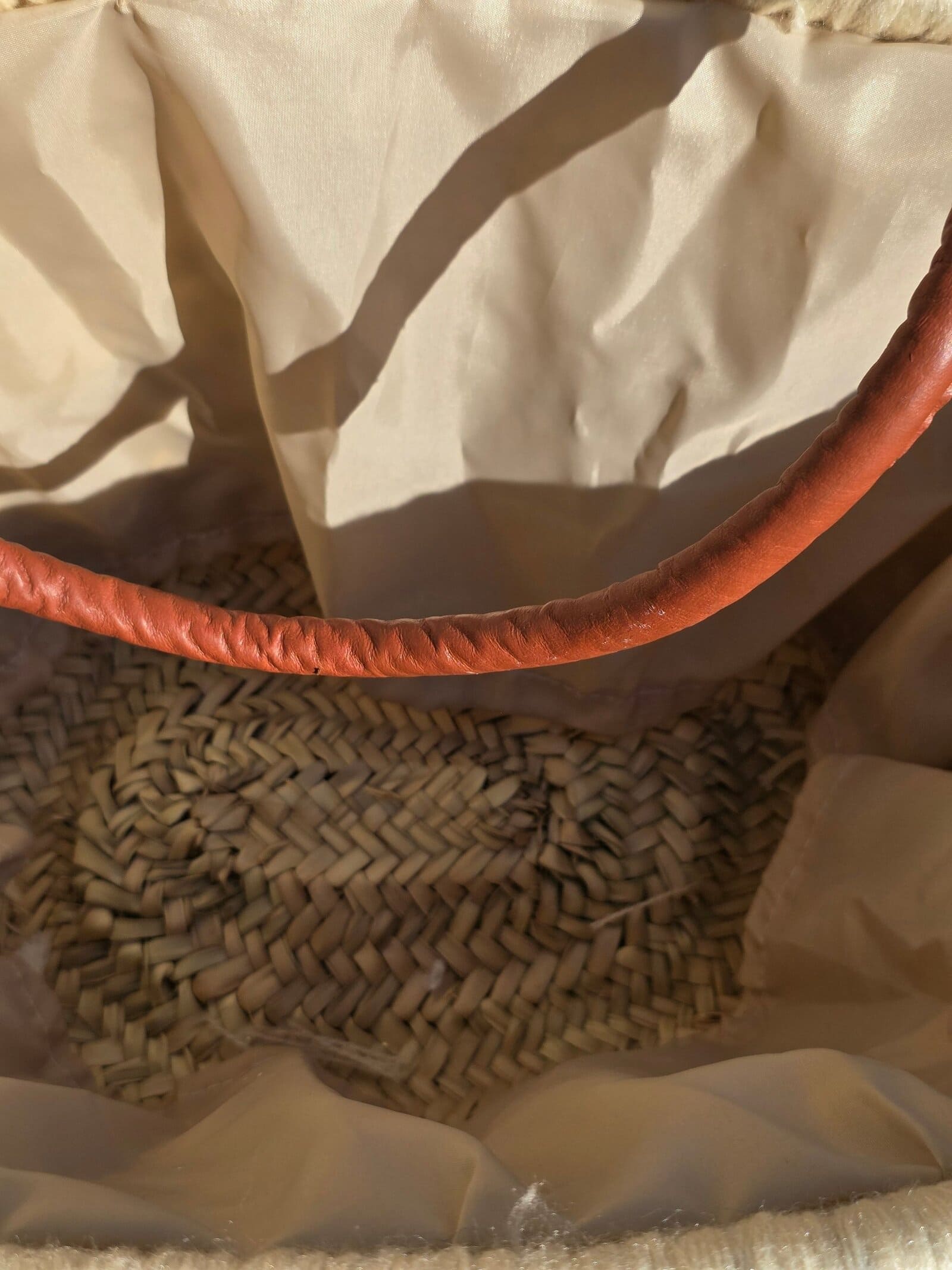 PANIER DOUCEUR NOMADE – POMPONS ÉCRUS & ANSES EN CUIR