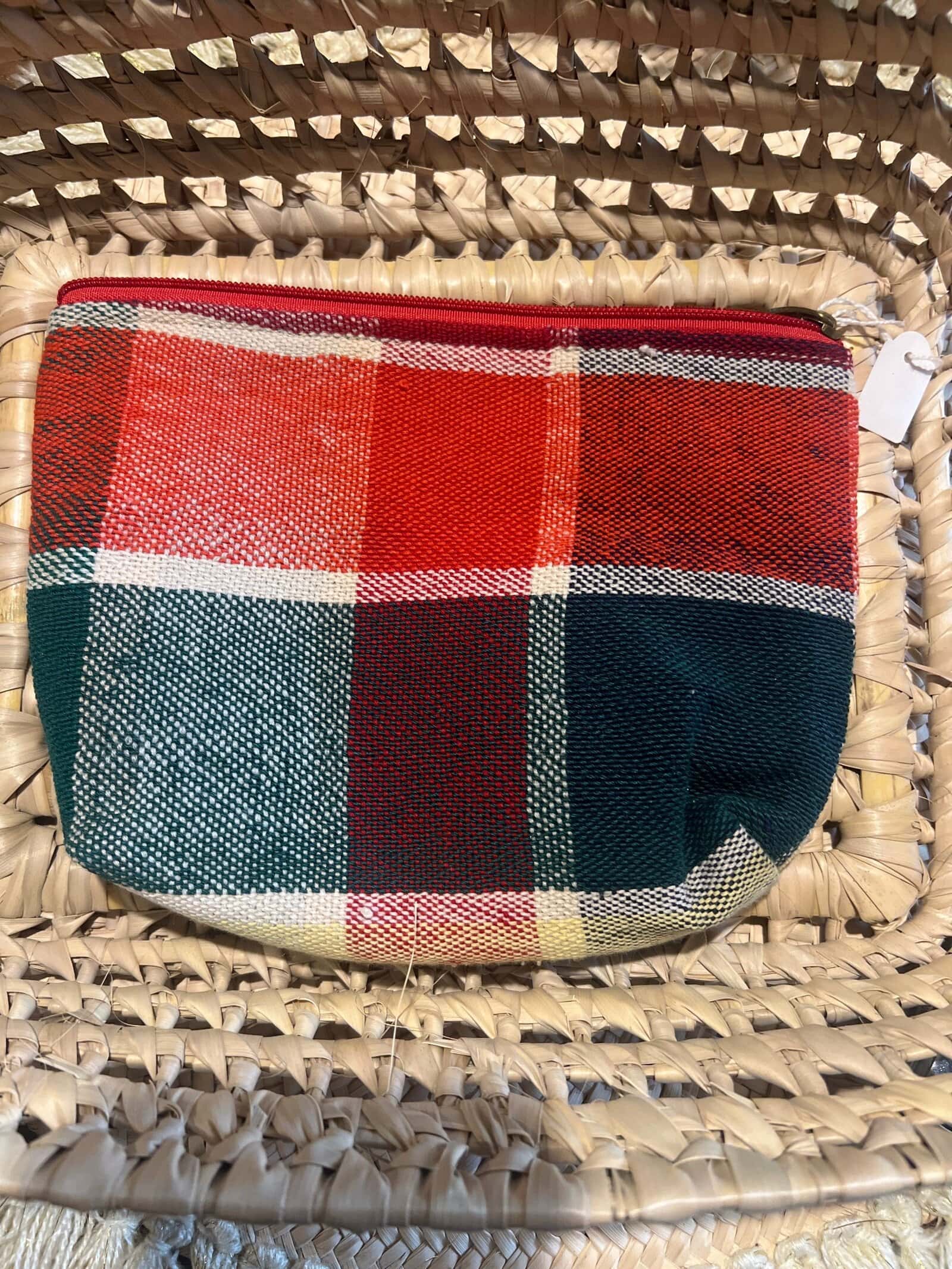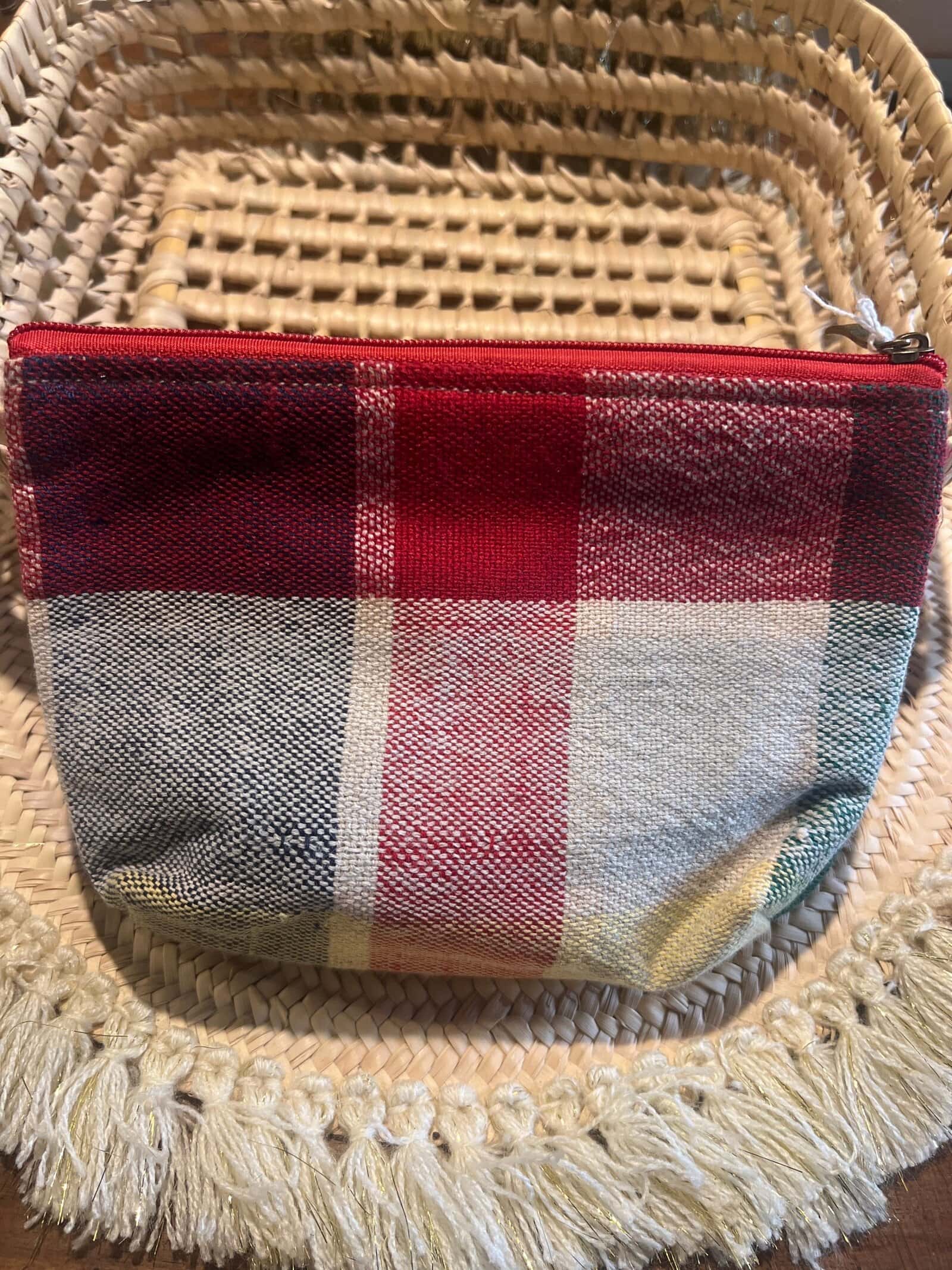 Pochette artisanale en tissu tissé, idéale pour organiser ses essentiels avec une touche bohème douce et élégante.