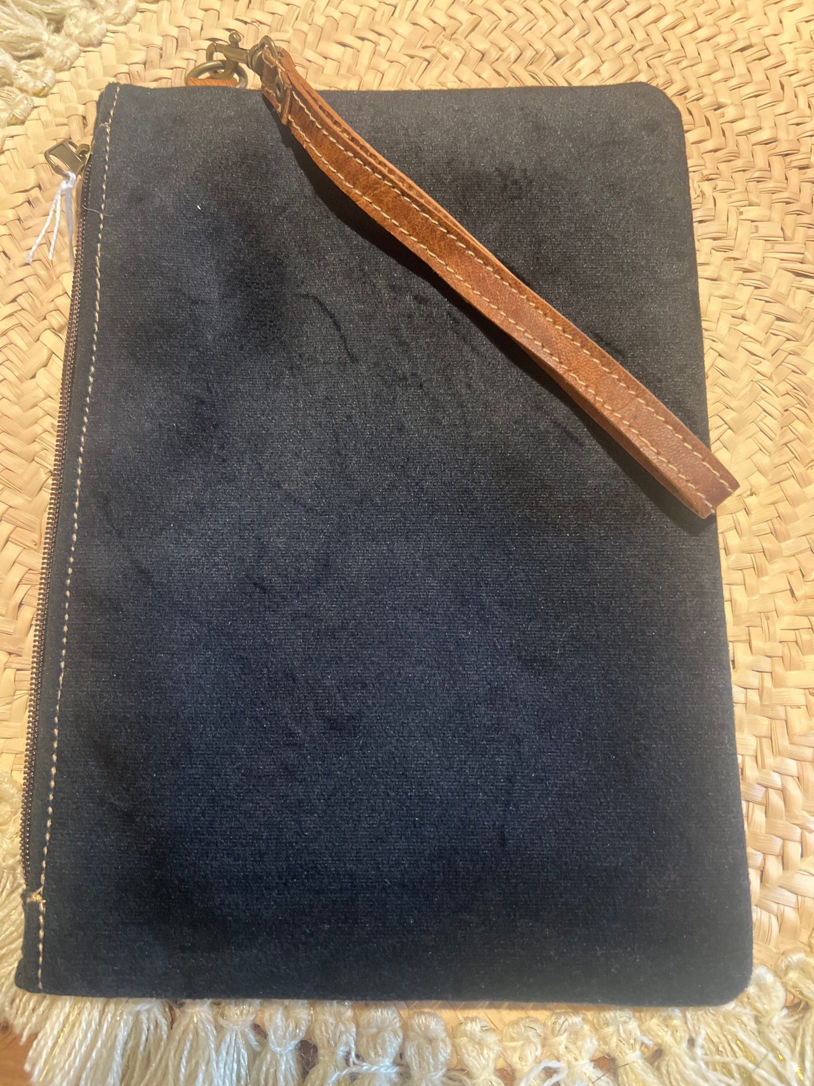 Pochette artisanale Visage – Effet velours & cuir
